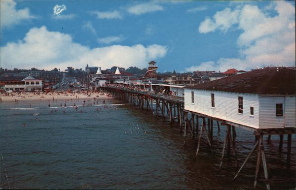 Looking Up Old Orchard Street from the Pier at Maine's most famous Summer Resort Old Orchard Beach, Maine K—2984 "Lusterchrome” REG. U.S. PAT. OFF. MADE ONLY BY TICHNOR BROS., INC., BOSTON 15, Mass.