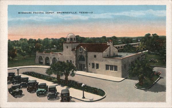 Front: MISSOURI PACIFIC DEPOT, BROWNSVILLE, TEXAS-7 Back: 6363 N TO ANYWHERE IN U,S, VIA AIRMAIL ca. BY E. C. KROPP CO., MILWAUKEE, WIS. Loo