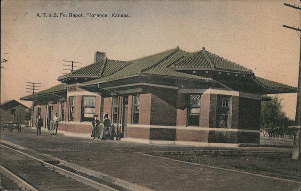 Front: A. T. & S. Fe. Depot, Florence, Kansas. TURORE Back: q 리 16 125 ORE JU 157 POSTS 19 VISOS ki Addiess Hang Mis Senn Miller met on med petih minum souper Hatta enbode RS Kerese eu. heard 09 4631