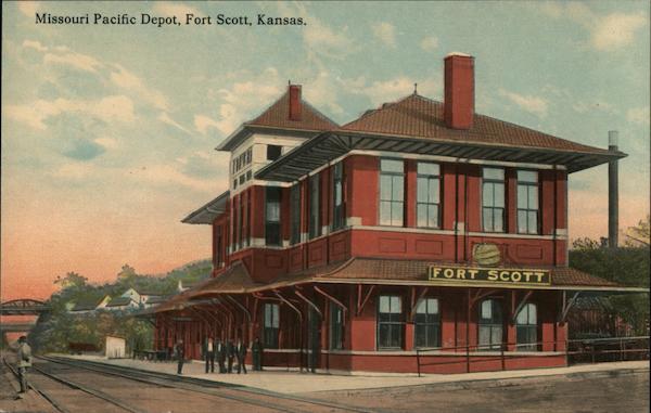 Front: Missouri Pacific Depot, Fort Scott, Kansas. FORT SCOTT Back: Place the Stamp Here! and Island Possessions Cuba, Canada and FORT MESSAGE MAY BE WRITTEN ON THIS SIDE. SCOTT, KANS. 500 R-33166