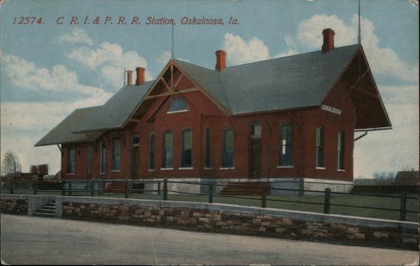 Front: 12574. C. R. I. & P. R. R. Station, Oskaloosa, la. OSKALOOSA Back: 9) CO CHICAGO W Pub. by The Acmegraph Co., Chicago,