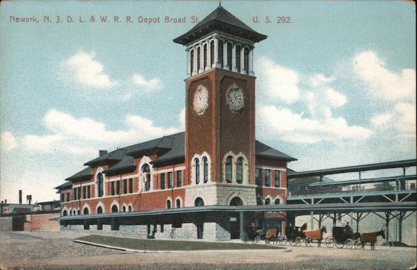 Front: Newark, N. J. D. L. & W. R. R. Depot Broad St U. S. 292. Back: L. Angelea in a dine honestoskrider someone mill Thold me an & lead ha! ha! trooks chane once abus." for meto