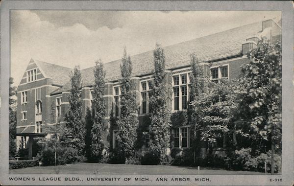 Front: WOMEN S LEAGUE BLDG., UNIVERSITY OF MICH., ANN ARBOR, MICH. E-318 Back: PUB. BY CHAFFEE & CO., INC., DETROIT, MICH. VIEW CLEAR MFD. BY WAYNE PAPER BOX & PRTG. CORP., FORT WAYNE, IND.