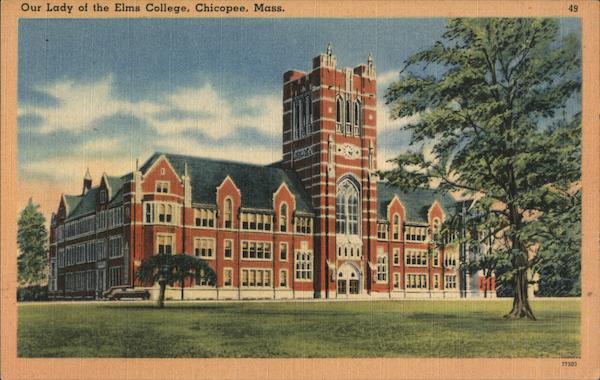 Front: 49 Our Lady of the Elms College, Chicopee, Mass. 77503 Back: "TICHNOR QUALITY VIEWS” REG. U. S. PAT. OFF. MADE ONLY BY TICHNOR BROS., INC., BOSTON, MASS. PUB. BY THE SPRINGFIELD NEWS COMPANY