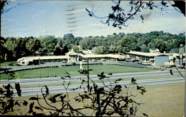 Located on Landscaped Spacious Grounds well back from highway 52 Units. 2 miles north of Springfield on U.S. Rts. 5 & 5A - 2 1/2 mile south of Mass. Pike Exit 4, West Springfield. Near Rt. 20. Phones, TV, Air Cond., Playground, Gift Shop, Cribs. Restaurants, Recreation, Churches nearby. New Swimming Pool. West Springfield, Mass. Tel. Republic 3-2161. |