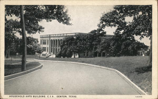 Front: HOUSEHOLD ARTS BUILDING, C.I.A., DENTON, TEXAS. 120200 Back: C. T. AMERICAN ART BLACK AND WHITE 09 TO СА PGO