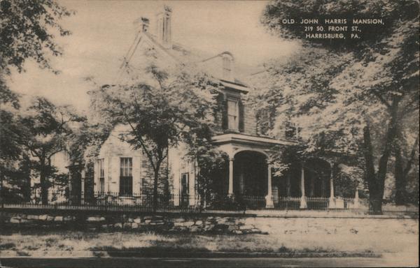| There is a black and white photograph of the Old John Harris Mansion in Harrisburg, Pennsylvania. The mansion was built in 1766 by John Harris, the founder of the City of Harrisburg. It was the home of Gen. Simon Cameron from 1863-1889 and the gift of his heirs to the Dauphin Country Historical Society. The mansion is located at 219 South Front Street in Harrisburg, Pennsylvania. |