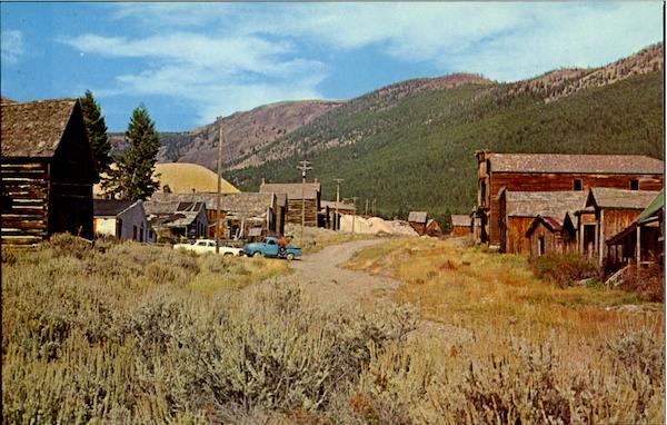 | Elkhorn, Montana, a former mining camp, was established in 1872, and produced $14,000,000 worth of gold and silver. Bullet holes still remaining in some of the buildings, show how disputes were settled here in the early boom days, when the town had 14 saloons, and a corresponding number of people. |