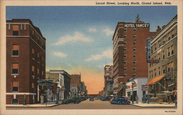 leRAND ISLAND Locust Street, Looking North, Grand Island, Neb. 11 HOTEL YANCEY L. STRATTON HOSPITAL COFFEE SHOP BEER 9A-H1664