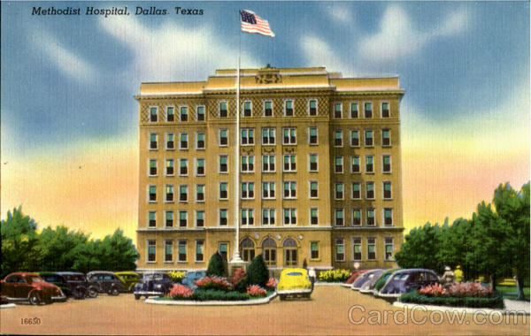 Front: Methodist Hospital, Dallas. Texas నం• Back: A-COLOUR PICTURE" PUBLICATION. BOSTON 15. MASS. Vsn Sold by Martin News Agency, Dallas, Texas