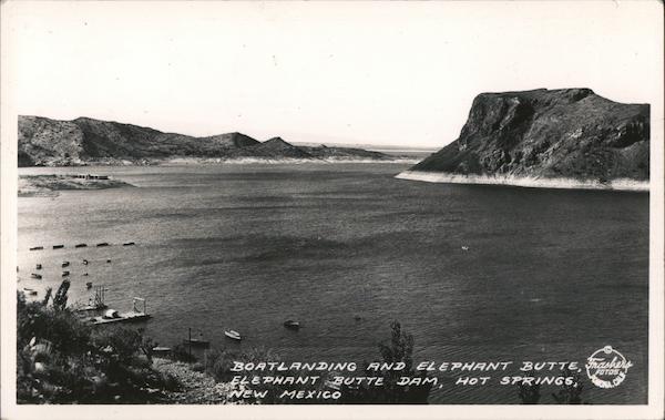 Front: BOATLANDING AND ELEPHANT BUTTE, nashers ELEPHAT BUTTE DAM, HOT SPRINGS WEW MEXICO FOTOS ONA Back: FOOTA POST CAMAA LENTINO 1936 bri ADDRES Been here Mr a. F. Hayde week. Learning tomorrow for deres Sextes kempy Plenty L.BM مس سرہ down here.