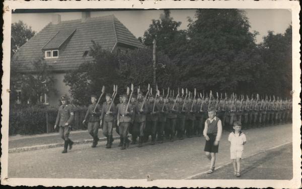 Soldiers Marching Down Street