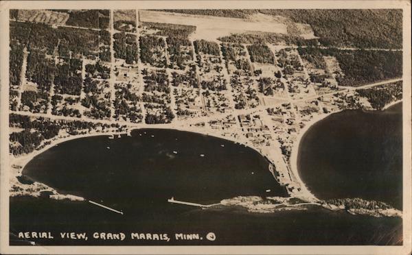 Front: AERIAL VIEW, CRAND MARAIS, MINN. O Back: COUPONS Defender Copyright by CliƱord Waters, Grand Marais, Mica, Margerit Johnson