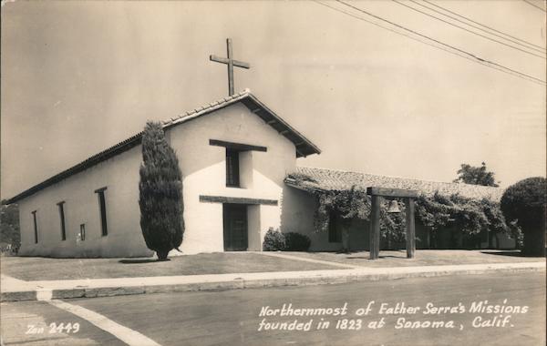 Front: LI VYYRINE Northernmost of Eather Serra's Missions founded in 1823 at Sonoma, Zan 2449 Calif. t. Back: Kodak PLAC STAM HER - Paper