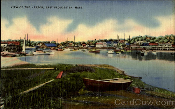 Front: VIEW OF THE HARBOR, EAST GLOUCESTER, MASS. Back: 15219 COLOUR PICTURE SHURTLEFF, GLOUCESTER, MASS PUBLISHED BY FRANK M PUBLICATION, CAMBRIDGE, MASS., U. S. A.
