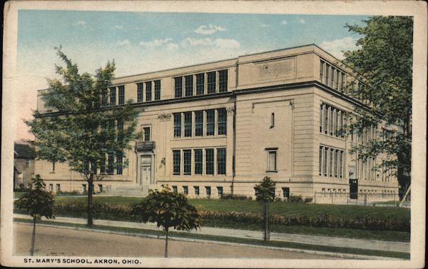 Front: 11111 ST. MARY'S SCHOOL, AKRON, OHIO. Back: A-80680 35 arrival of a C. waarscing Tu DOST CAR. baby girl Thules, mar 24 minuo. Fund Schauer Both done home Columbus Ohio 87 Budbill an are So far C- ART Chuy Jordan