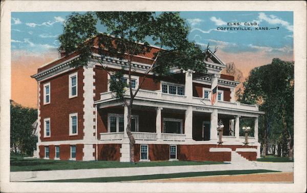 Front: ELKS' CLUB, COFFEYVILLE, KANS.-7 SPOES77S Back: 6062 ST TO ANYWHERE IN U.S. VIA AIRMAIL co -MADE IN U.S.A. BY E.C. KROPP CO., MILWAUKEE-