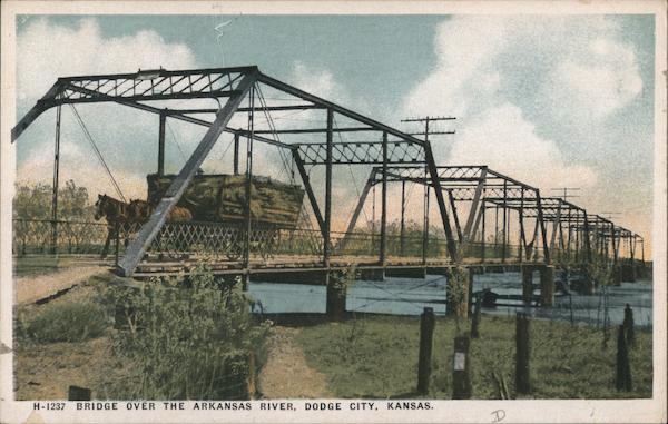 Front: H-1237 BRIDGE OVER THE ARKANSAS RIVER, DODGE CITY, KANSAS. Back: FRED Posterd ARVEY COMMERCIALCHROME 45862