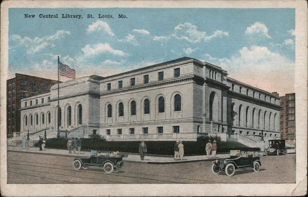 Front: New Central Library, St. Louis, Mo. 13D Back: 20505 NEW CENTRAL LIBRARY 14TH AND OLIVE STREETS, ST. LOUIS, MO. Covering an entire city block. A sunken garden in the rear of the building is one of the attractive features.