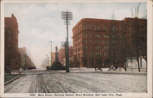 Front: 1008. Main Street, Showing Deseret News Building, Salt Lake City, Utah. Back: THIS SPACE CAN BE USED FOR A WRITTEN MESSAGE, USING ONE-CENT STAMP DENVER COLO. THE THAYER PUBL SH Né có