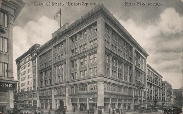 Front: "City of Paris,"Union Square. EFFEFEE! FFFFE! LINE NDIES A 18 DM 600DE CO. SING Back: 1ยข 52 FOREIGN 24 EDWARD H MITCHELL, PUBLISHER, SAN FRANCISCO