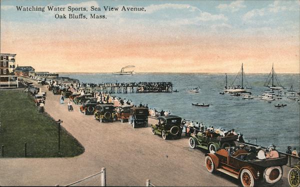 Front: Watching Water Sports, Sea View Avenue, Oak Bluffs, Mass. Back: R-59849 POSTA PUBLISHED BY J. N. CHAMBERLAIN, OAK BLUFFS, MASS. C.T. PHOTOCHROM. SC000