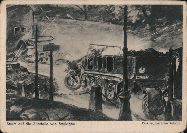 Front: JL WE-IFE Sturm auf die Zitadelle von Boulogne PK-Kriegsberichter Adolph Back: TIEFDRUCK ECHT KUPFER- E 1061 Kunstverlag Johannes Thordsen jun., Hamburg 1. Ges. gesch. Nr. 206 DB