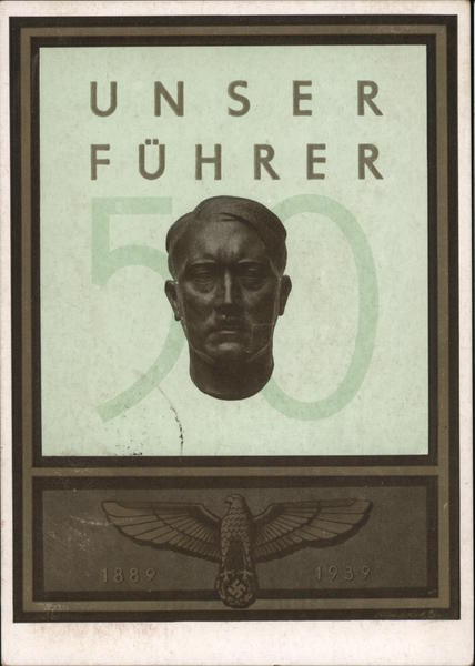 Front: UNSE R FÜHRER 1889 1939 Back: WIEN 12 DER FÜHRER IN SEINER GEBURTSSTADT BRAUNAU 123-38 38 Nadidruck verboten 193 Het 20.4 [ FEB 50. Führers [ 100 Oltmars Deutſch die Ceburtsto G. 1 - Verlag Photo-Hoffmann, München, Friedrichſtraße 34.