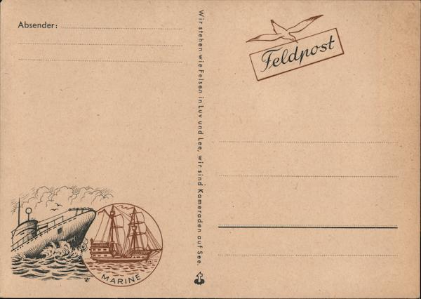 Absender: Feldpost MARINE Wir stehen wie Felsen in Luv und Le e, wir sind Kameraden auf See.
