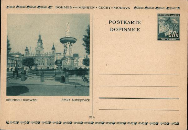 * BÖHMEN und MÄHREN * ČECHY MORAVA BÖHMEN UND MÄHREN DOPISNICE CECHY A MORAVA ANTON BÖHMISCH BUDWEIS ČESKÉ BUDĚJOVICE 70 h