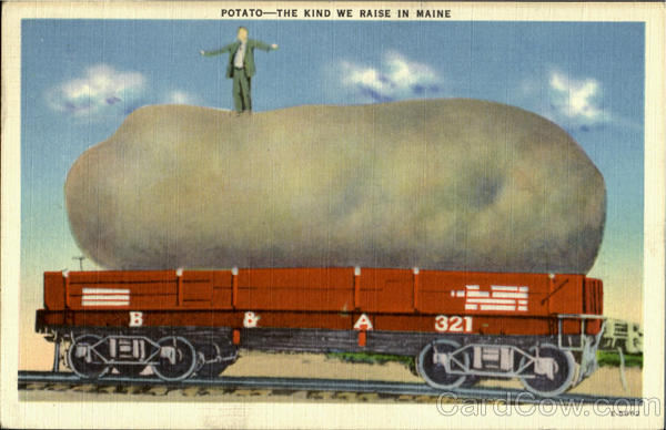 Front: POTATO-THE KIND WE RAISE IN MAINE 321 E-5662 Back: TERD CEO 1789-1792 1946 / tello, I would like to change P.cards with I hope you like there be Blane 1/2 manson fees Pittery, Maine Carl w Wolker 222-14th st Vallets Colifornia