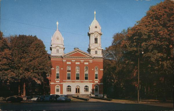 COURT HOUSE at Franklin, Pa., county seat of Venango County, on U. S. Highways 62, and 322 and State Rt. 8 along the Allegheny River. Ektachrome by Richard C. Miller Natural Color Card Published by Modern-Ad, Butler, Pa. 4698