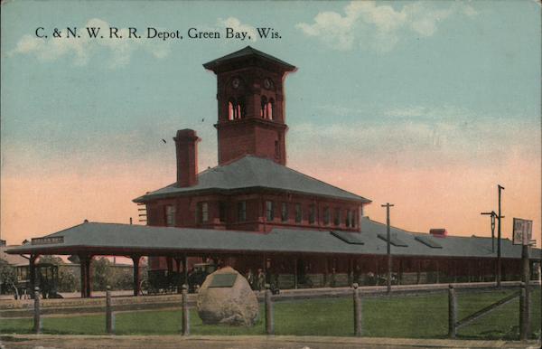 Front: C. & N. W. R. R. Depot, Green Bay, Wis. Back: BA GR July 8 PM 1915 baren 19.15 m. M. Inbouck Bay Will write from RB Illmois Cicery Prabligo m aninagat enabung 1, w Pre Swebaping at anday RowPlostu 22116 8.5 g t Court Mom Plate 2972