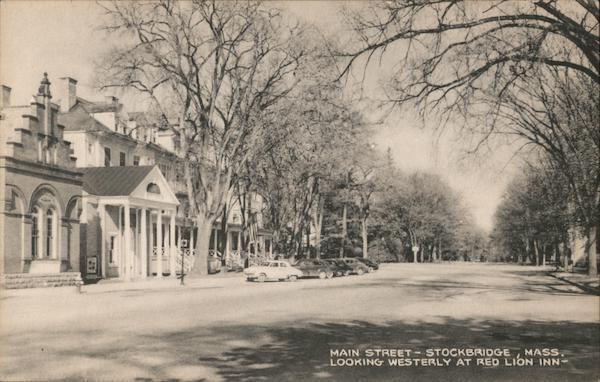 Front: MAIN STREET- STOCKBRIDGE LOOKING WESTERLY AT RED LION INN- MASS, Back: Published for Edward Wells, Dumont, N. J. by The Collotype Co., Elizabeth, N.J. and N.Y.