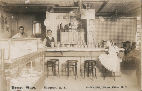 Front: MOsiO MOXIE MOXIE GOLDEN abelh RAPESJUICE Reese, Store. Sauquoit, N. Y. MANNING, Phote, Utica, N. Y Back: PML NAŽOTH, S GRAPE JUICE Ice cream Soda & Candy FOR SALE BY Wavid Reese Sauququ *