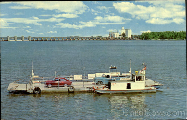 | Connects U.S. Highway 61, Canton, Mo. to Illinois Route 96. Hours during summer months - 7 a.m. to 8 p.m. Months of operation March 15 to December 15. Automobile rates - $1.50 one way, $2.00 round trip. Ferry ready to go when you arrive. Canton Dam in background. |