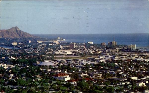 Spectacular view from the observation point on the rim of historic Punchbowl Crater