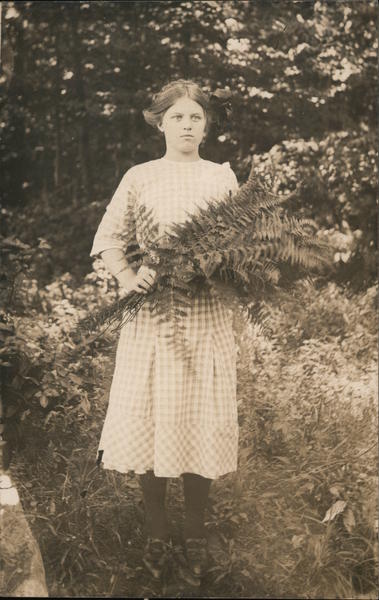 Teenage Girl with Armload of Fern Fronds