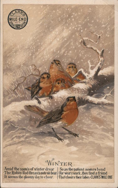The Robin-Red-Breast's pote we bear Oer wearywork,they find a friend