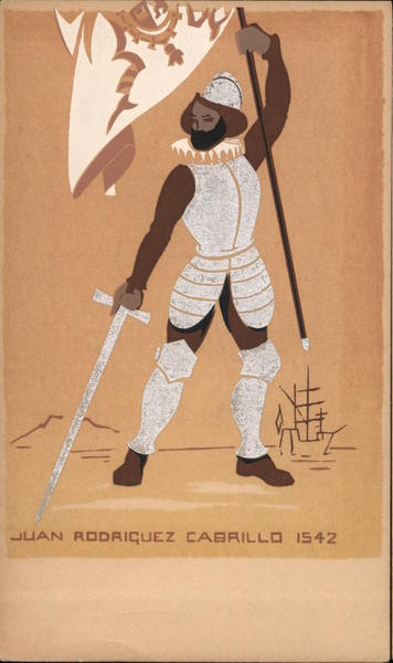 Front: JUAN RODRICUEZ CABRILLO 1542 MASEN Back: View of SANTA BARBARA, California HAND MADE Original Serigraph PUBLISHED BY M. A. SHEEHAN, TOPANGA, CALIFORNIA -