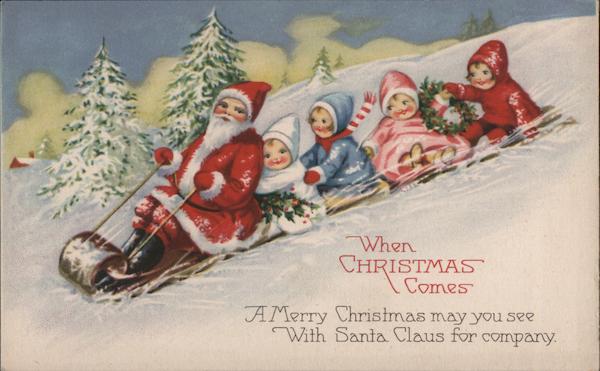 Front: When CHRISTMAS Comes AMerry Chrisłmas may you see With Santa Claus for company. Back: DOMESTIC 1¢ MADE IN SERIES 1686