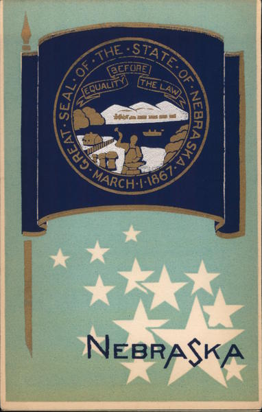 Front: STATE-OF BEFORE THE LAW EQUALITY MARCH-T-1861 NEBRASKA Back: HAND MADE COLLECTOR Original Serigraph CLUB ON AMERICA PUBLISHED BY M. A. SHEEHAN, TOPANGA, CALIFORNIA - THIS EDITION IS LIMITED TO TWO THOUSAND SETS THIS CARD IS PART OF SET NO. 73