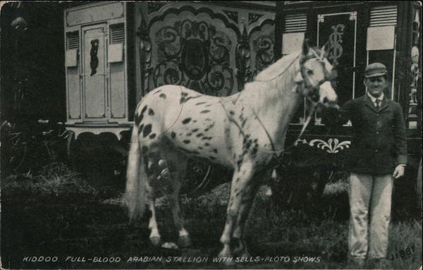 Front: KIDDOO. FULL-BLOOD ARABIAN STALLION WITH SELLS-FLOTO SHOWS 1881 Back: POST GRD THIS SPACE CAN BE USED FOR A WRITTEN MESSAGE, USING ONE-CENT STAMP