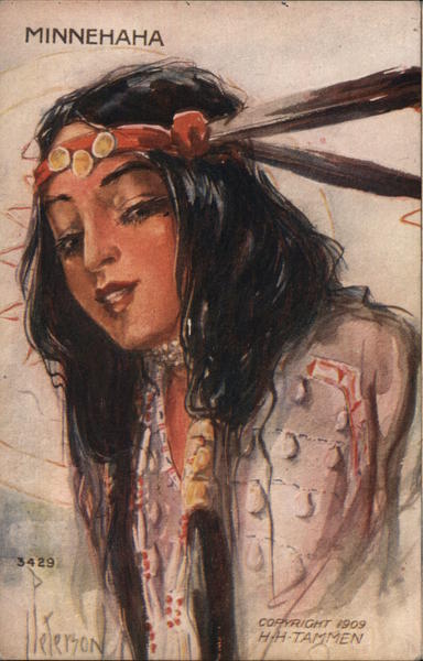 Front: MINNEHAHA 3429 COPYRIGHT 1909 HH TAMMEN Back: POST ÁRD THIS SPACE CAN BE USED FOR A WRITTEN MESSAGE, USING ONE-CENT STAMP