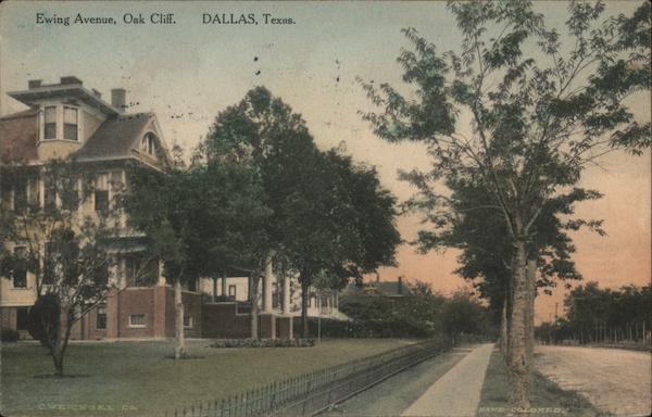 Front: Ewing Avenue, Oak Cliff. DALLAS, Texas. C.WEICHrGEL CO. HAND-COLORED, Back: S. POST-WARDI و ۲۴ دي 1913 ca an Just wearifon Auto rite of the Herman Schieben treet auch dill not wear an Overcoat 109.Joh zabong Chesgo regals Tal Maa Coletter