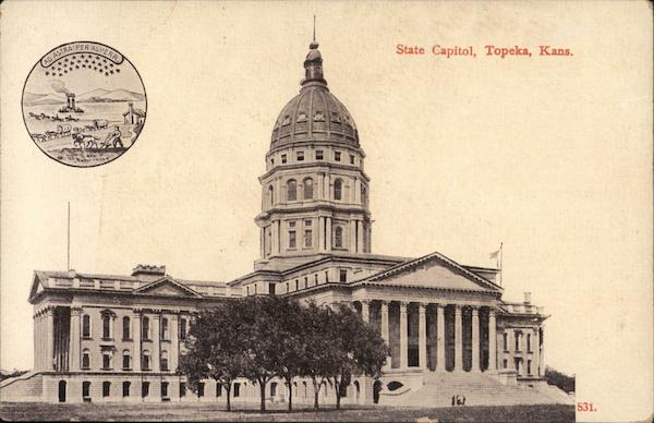 Front: TAD ASTRA PER ASPERA, PER ASPERA AD ASTR State Capitol, Topeka, Kans. 531. Back: AULI CEWHEELOCK&CO PEORIA. LL. :) EXCLUSIVE THIS SPACE FOR WRITING THIS SPACE FOR THE ADDRESS C. E. WHEELOOK & Co., Peoria, Ill. and Leipzig, Made in Germany.