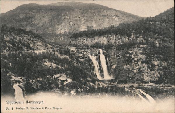 Front: Skjarven i Hardanger. No. 3 Forlag: K. Knudsen & Co. Bergen. Back: Norge. Norvège. Brevkort. Carte postale Verdenspostforeningen Union postale universelle. Til Paa denne side skrives kun adressen. Côté réservé à l'adresse.