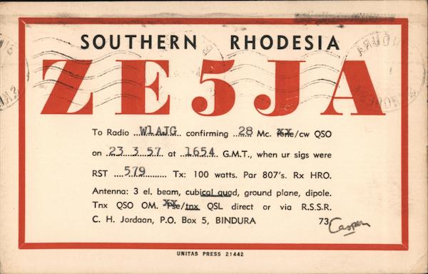 To Radio .W. AJG confirming .28 Mc. te/cw QSO