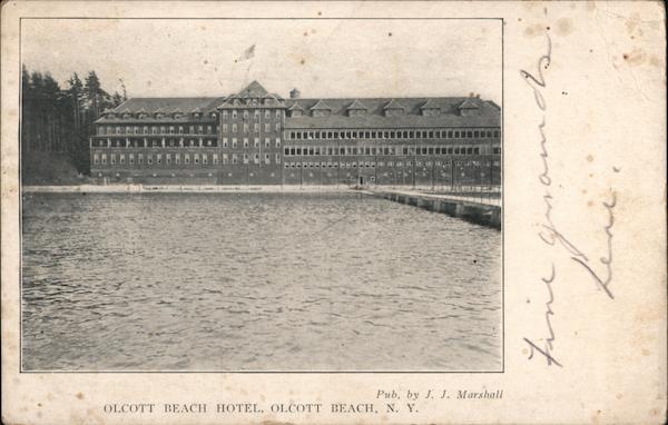 Front: BRE Pub. by J. J. Marshall OLCOTT BEACH HOTEL, OLCOTT BEACH, N. Y. Back: JUL \W همه N. Carl. to POST CARBLC /2960g are mith bineret hy dint you nete Mr. Burnelle Bank once in и while doche ہے۔ Kennedy n ry