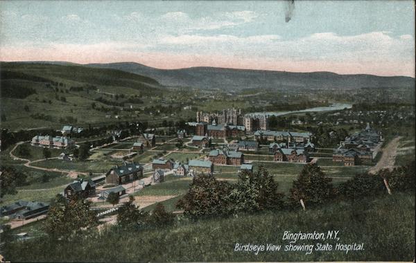 Front: Binghamton, N.Y, Birdseye View showing State Hospital. Back: Sost Card. One Cent for United States, and Island Possessions, Cuba, Canada and THE HUGH C. LEIGHTON CO,, MANUFACTURERS , PORTLAND, ME., U.S.A. MADE IN GERMANY 4198